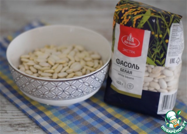 Фасоль замочить на 10-12 часов в воде. Промыть и отварить фасоль до готовности. Я готовлю фасоль белую ТМ "Агро-Альянс" Экстра.