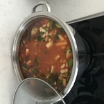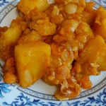 Тушеный картофель с овощами и белой фасолью. Замечательное во всех отношениях блюдо. Сытное и вкусное, густое, насыщенное. Может быть и гарниром, и полноценным обедом или ужином. Попробуйте!