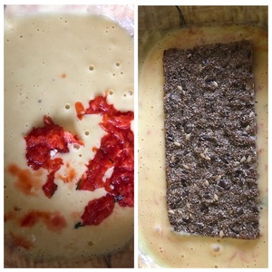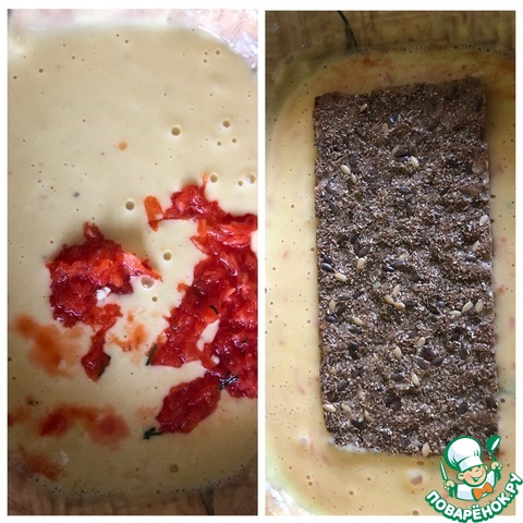 Болгарский перец натереть на мелкой тёрке, кляр перемешать. Хлебцы опустить в кляр с двух сторон.
