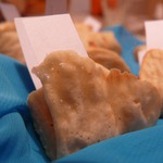 На каждый кружочек кладем наше пожелание и быстро заворачиваем полумесяцем или вареником - как хочется. Если кружочки остыли - ставим на пару минут в горячую духовку. Нижняя сторона получается более румяной, поэтому заворачиваем так, чтоб она была сверху.
