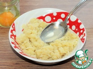 2. Добавляем к картофелю 1-2 ст. л. яичного белка, соль и перец, перемешиваем.