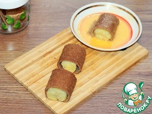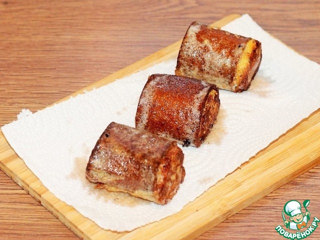 9. Макаем хлебец с начинкой в взбитое яйцо.