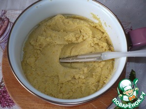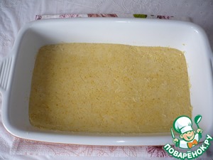 Переложить тесто из кастрюли в прямоугольную форму (я взяла форму размером 27х17), дайте немного остыть.