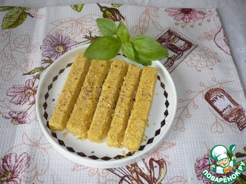 Выложите палочки на тарелку, посыпьте морской солью, свежемолотым черным перцем, специями. Панис лучше всего подавать теплым с овощным дип-соусом.