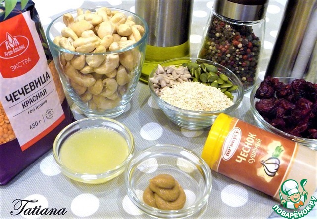 Ингредиенты для «Чечевично-ореховый паштет с клюквой и семечками»: