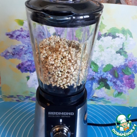 Поместить в блендер банан, смородину, сироп или мед, зеленую гречку, соль, ванилин. Смородину лучше предварительно разморозить, так блендеру будет легче измельчать.