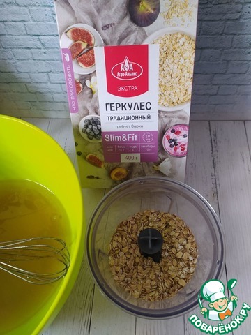 Геркулесовые хлопья импульсами пробьем в чаше блендера.