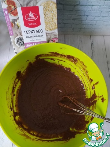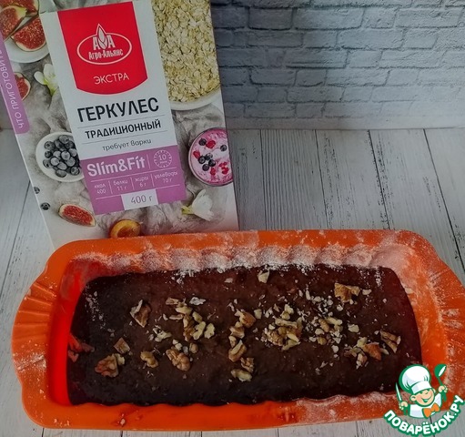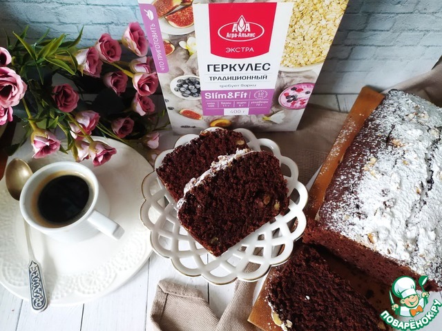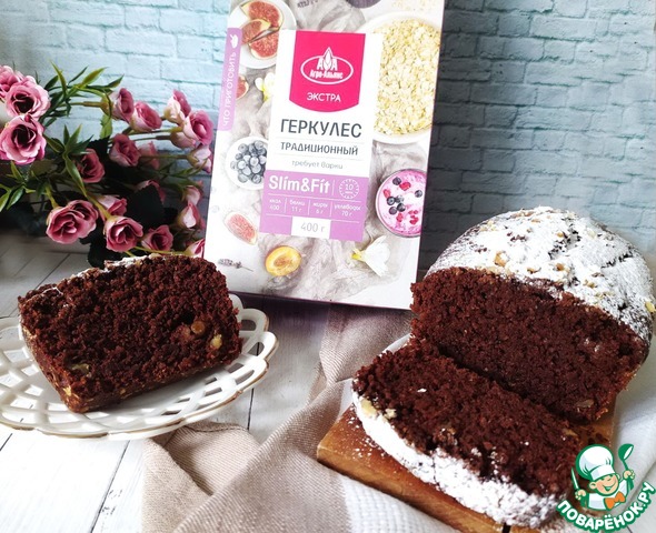 Рецепт «Постный шоколадный кекс с геркулесовыми хлопьями»: