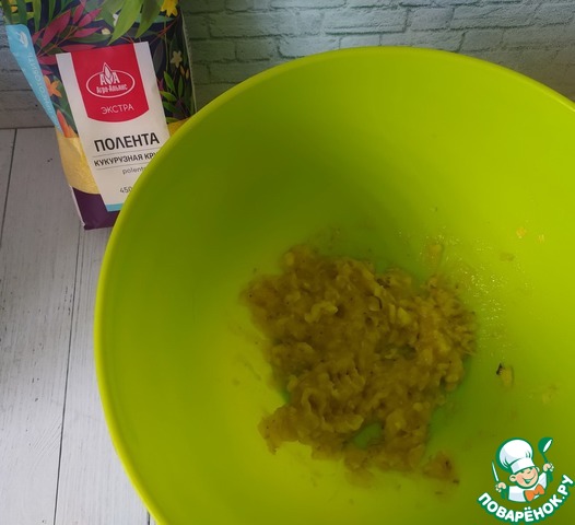В миске смешайте поленту, муку, разрыхлитель и соль.