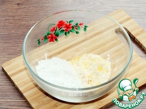 • 5. Приготовим кляр. Смешиваем кукурузную и пшеничную муку.