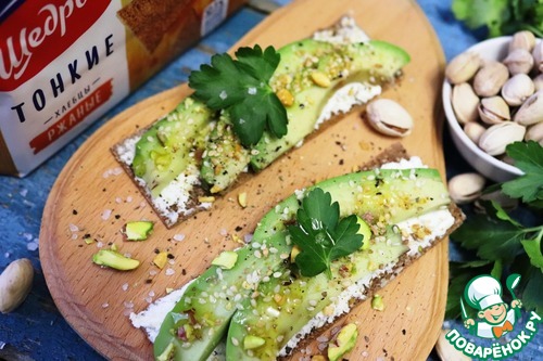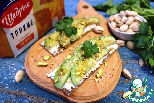 Рецепт «Хлебцы с авокадо и фисташковой крошкой»: