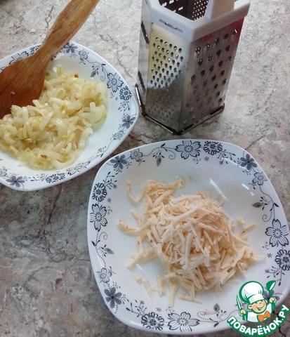 Плавленый сырок со вкусом грибов измельчить на крупной тёрке.
