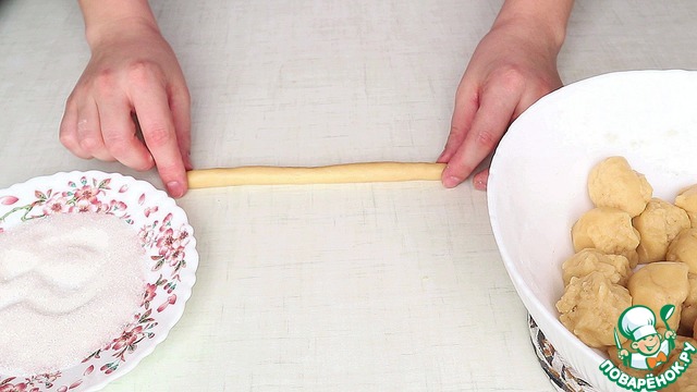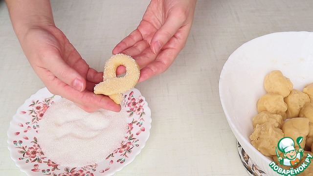 Соединяю края и обмакиваю в сахар.