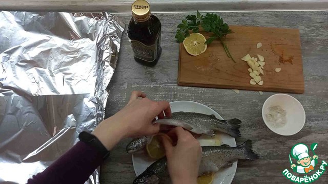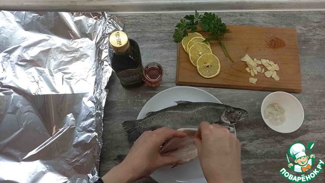 • Укладываем форель на фольгу