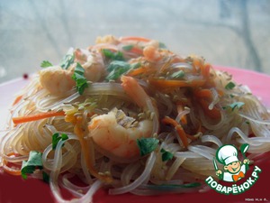 Рецепт «Салат из фунчозы с овощами и креветками»:
