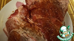 Мясо свинины моем, обсушиваем бумажным полотенцем. По желанию срезаем жилки, сухожилия, шкурку. Затем солим, перчим и посыпаем приправой для мяса.