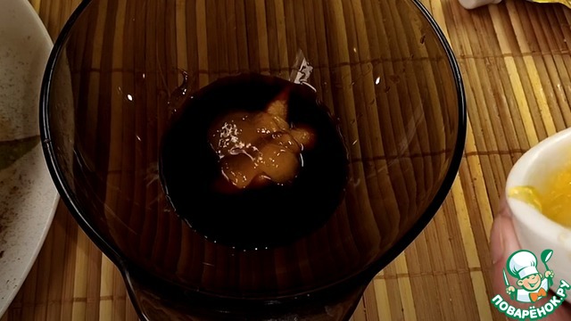 В глубокой тарелке соединим горчицу, мёд и соевый соус, перемешиваем.