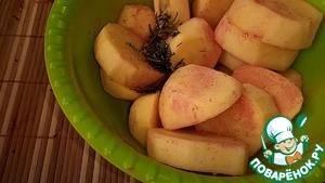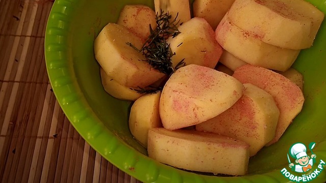 Картофель нужно посолить и посыпать паприкой и укропом, перемешиваем. (часть укропа нужно оставить!)