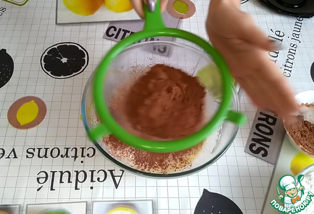 Постепенно добавляем просеянную муку с какао.