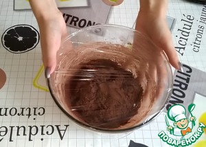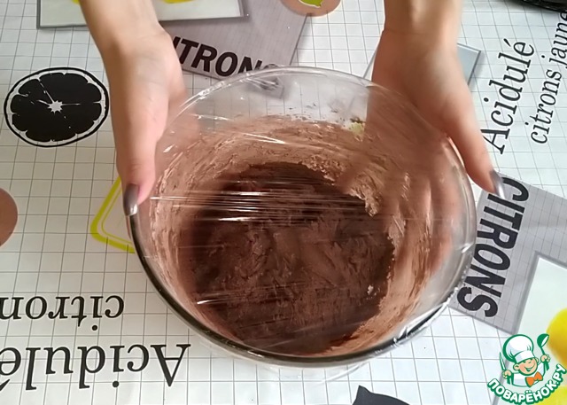 Накрываем его пищевой пленкой и убираем в холодильник на 1 час для того, чтобы тесто затвердело, и удобно было формировать печенье.