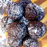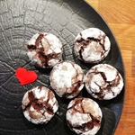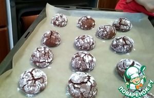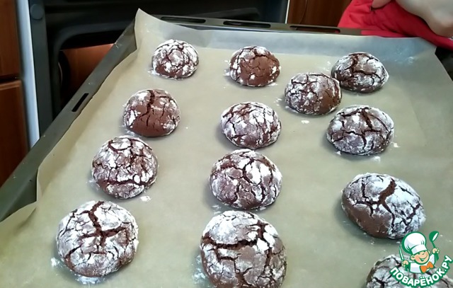 У печенья получается красивый мраморный рисунок, будто оно треснутое. Это происходит потому, что сахарная пудра не тает в духовке.