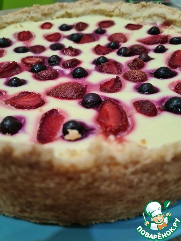 Сверху выкладываем ягоды и покрываем сверху творожной начинкой. Выпекаем в разогретой до 180° в духовке приблизительно 45 минут.