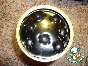 Берем маслины, жидкость не сливаем!!! Полностью все содержимое баночки отправляем в бульон.