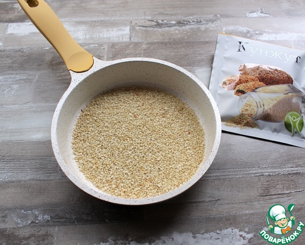 Обжаренный кунжут взбить блендером, добавив немного отвара от нута или воды, 0,5 ч. л лимонного сока, 1 ч. л. раст. масло, довести до состояния паштета