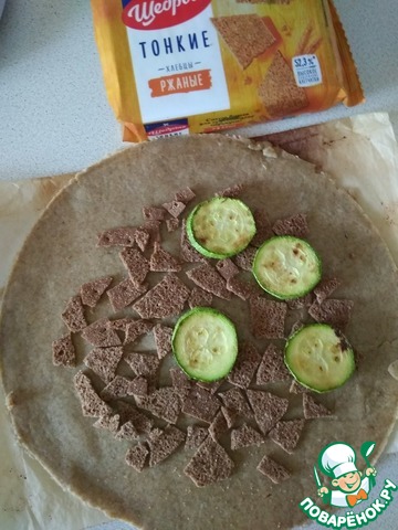 Выложить поломанные хлебцы ( или посыпать сухарями), отступая от краёв по 3 см
