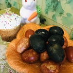 П.С. Подумалось, что можно усилить "космическость", побрызгав немного на окрашенные яйца зубной пастой через щетку и расческу. Мы так в школе очень удачно изображали на стенгазете к дню космонавтики звезды. Возможно, в два этапа: белой и голубой пастой (Остапа несло