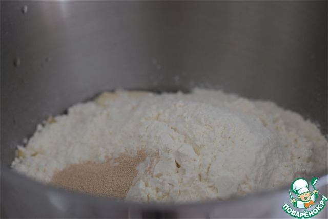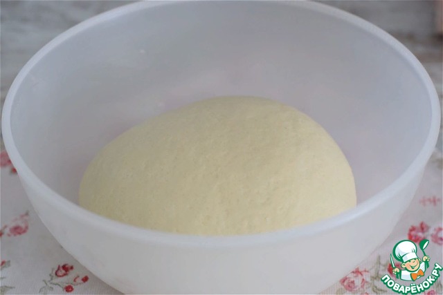 Замесить мягкое, нежное, пластичное тесто. Сразу всю муку всыпать не стоит, возможно придется скорректировать ее количество. (добавить больше или, наоборот, меньше) Тесто выложить в чашу, затянуть пищевой пленкой и убрать в тепло для подхода на 35-40 минут.