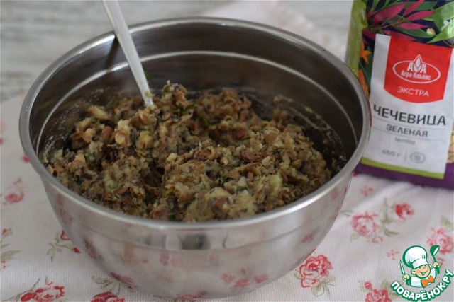 Чечевицу отварить до готовности. Даже лучше ее немного разварить.