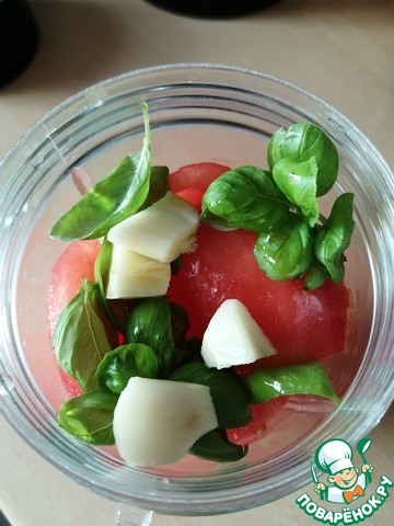 • Сложить в блендер томаты, чеснок, базилик, я взяла свежий, но можно и сухой.