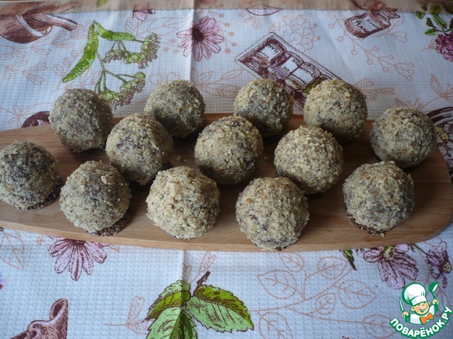 Готовые десертные шарики из гречневой крупы я запанировала измельченными грецкими орехами.