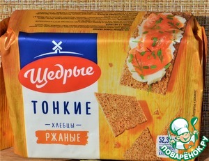 Нарезаем тонкими ломтиками чёрный хлеб или берём готовые ржаные хлебцы. Сегодня у меня "Щедрые" тонкие ржаные хлебцы.