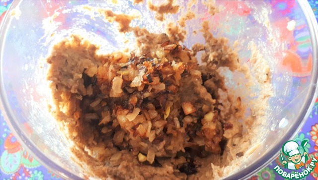 • Лук мелко нарезаем и хорошенько обжариваем. Я решила не измельчать его в блендере, а просто вмешать в паштет. Если хотите, пробейте и лук.