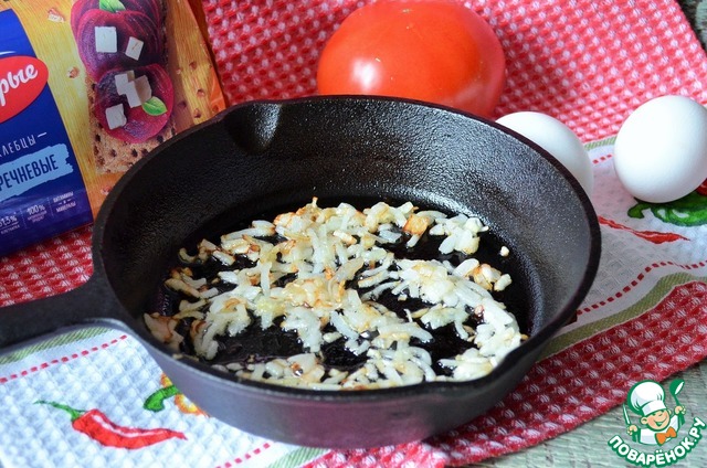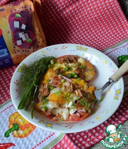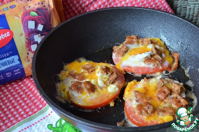 Рецепт «Яичница с хлебцами и помидором "Щедрая"»: