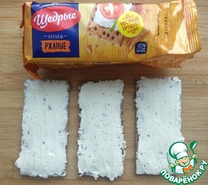 Ржаные хлебцы ТМ "Щедрые" смазать творожным сыром. На каждый сэндвич потребуется три хлебца.