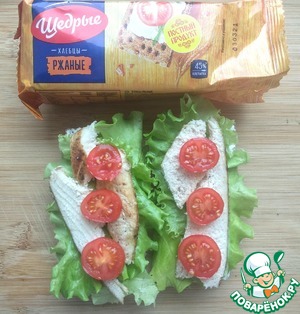И сверху накрыть хлебцем с творожным сыром, сухой стороной вверх.