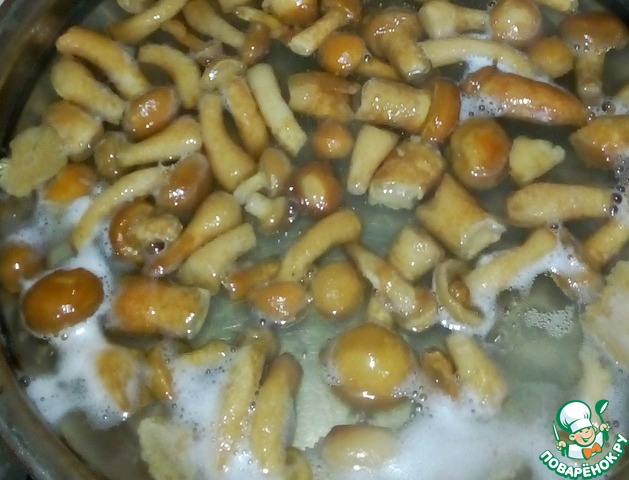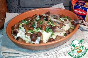 Одновременно были приготовлены грибы, у меня свежезамороженные опята.