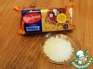Для подачи используем хлебцы Шедрые Гречневые, для украшения кокосовую стружку.