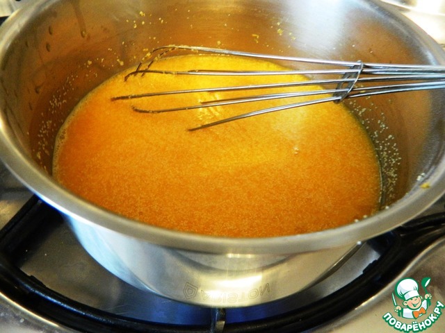 Возьмем кастрюлю с толстым дном, добавим сок, ставим на огонь.