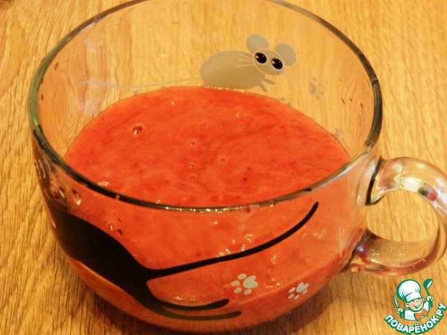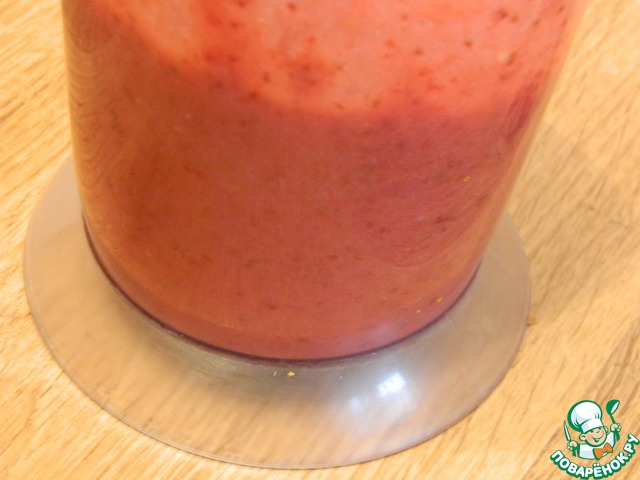 Клубнику и кусочки банана положим в чашу блендера и измельчим в пюре.