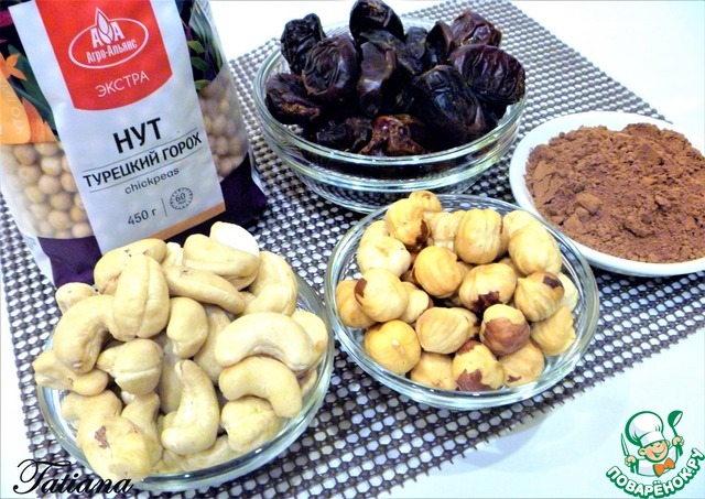 Ингредиенты для «Трюфели из нута с финиками и орехами»: