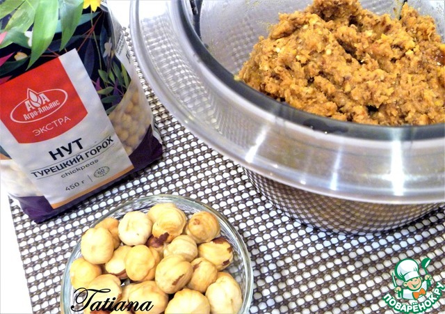 При измельчении в блендере нута, кешью и фиников добавляла воду, чтобы блендеру было "полегче"