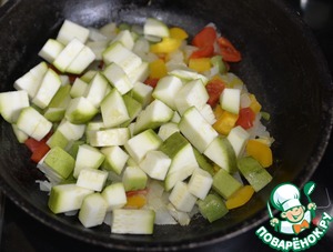 Кладём цуккини, перемешиваем.
