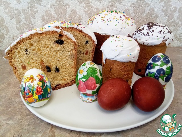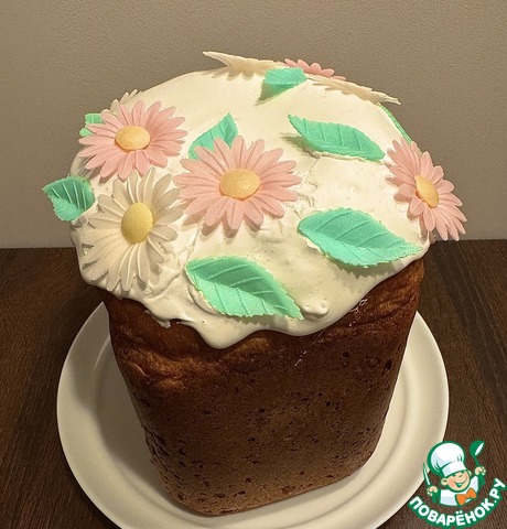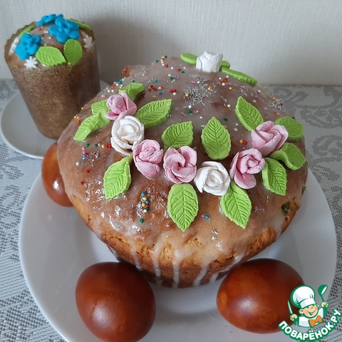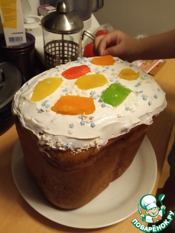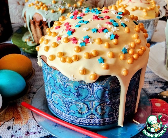 В последнее время использую только покупную глазурь "Добрик", ее хватает на два таких кулича.