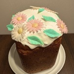 Перевернуть кулич, окунуть вниз макушкой в глазурь и провернуть по кругу – красивая шапочка готова!
