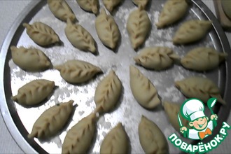 3. Раскатываем пласт теста и кладём на пельменницу, добавляем начинку и закрываем вторым пластом теста. Закатываем пельмени. Кладём на поднос и отправляем в морозильную камеру.
