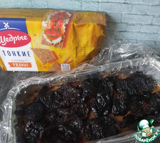 На хлебцы - слой чернослива. Затем опять хлебцы.